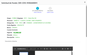 Una vez aprobado tener en cuenta que se debe registrar y contabilizar en Navision Perú (Navision Colombia) a fin de que el usuario pueda disponer del dinero y el estado de la solicitud sea DEPOSITADO.