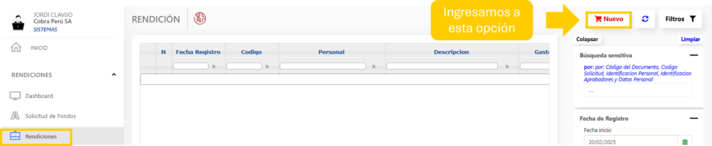 Vamos a aplicar la nueva funcionalidad de devolución de la solicitud de fondos realizando el siguiente proceso ingresando al módulo de Rendiciones: