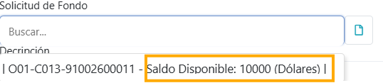 Tenemos que seleccionar una Solicitud de Fondos que tenemos pendiente de hacer la Rendición. El monto de la solicitud aparece en el detalle de la solicitud: