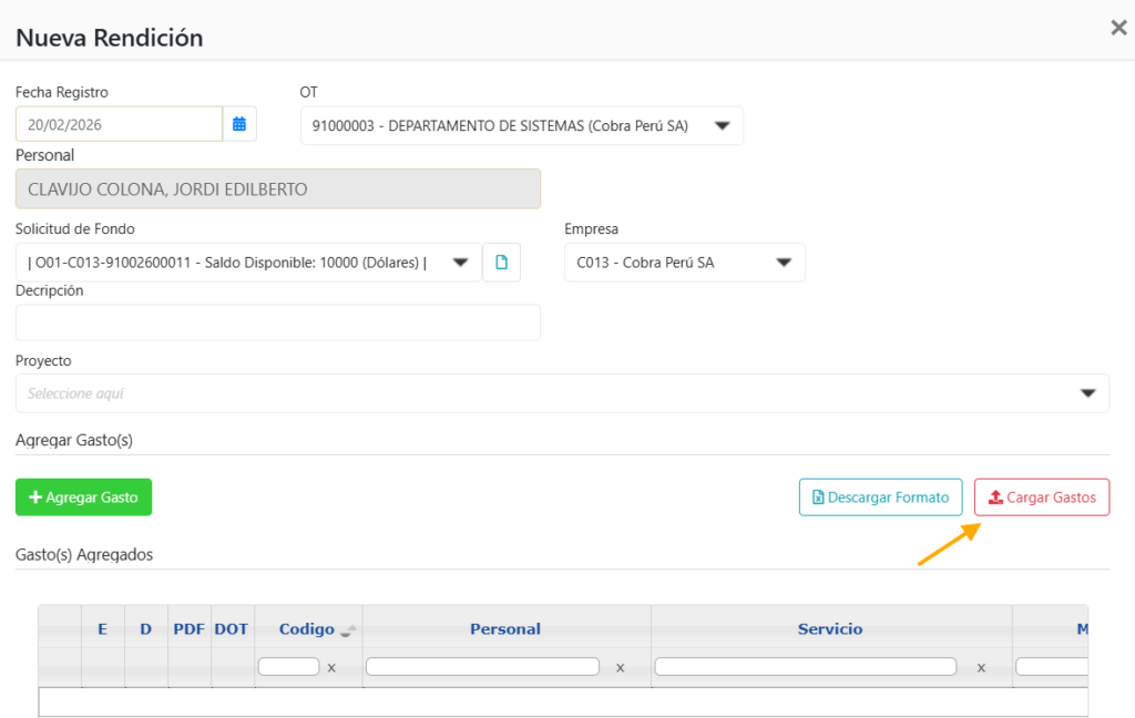 Finalmente lo podemos subir al sistema a través de la opción «Cargar Gastos»
