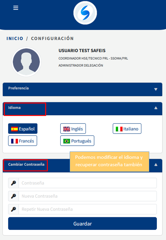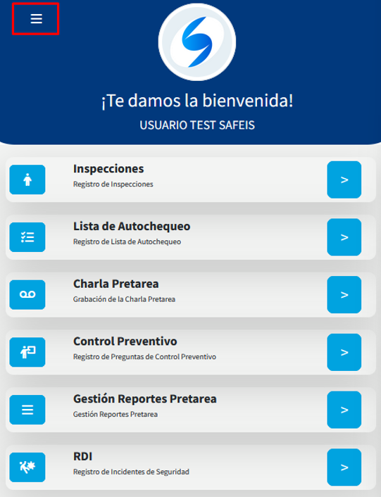 Una vez que ingresamos al App SAFE IS, veremos tres líneas en la parte superior izquierda. Desde ese menú podremos configurar varias opciones de nuestro perfil de usuario.