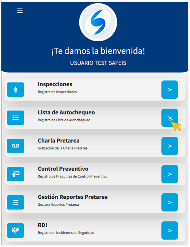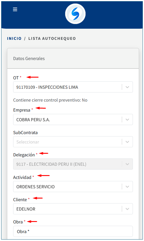Se ingresan los datos de la lista de Autochequeo. Al ingresar por primera vez te carga lo configurado en el perfil o se ingresa información inicial.
