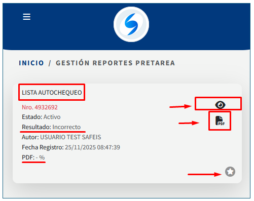 Una vez grabado, el registro pasa a la sección de Gestión de Autochequeo: