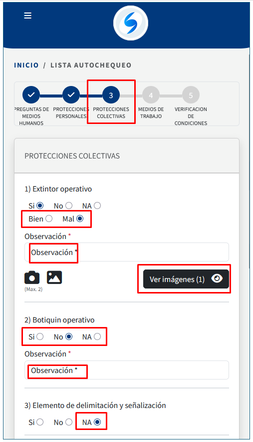 3)En el paso tres se pide responder preguntas sobre Protecciones Colectivas: