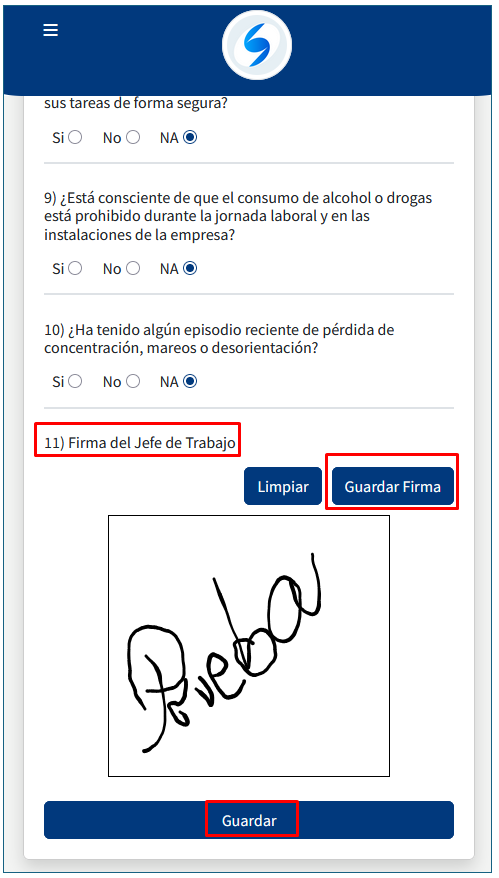 4) El paso final se responden las preguntas de medios de trabajo y le pide una firma: