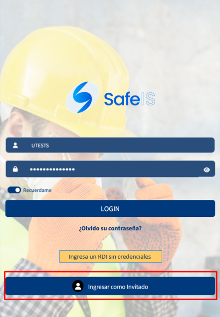 Tener en cuenta que también se puede grabar un RDI como usuario INVITADO (sin credenciales de acceso) desde la Pantalla Inicial, vale decir que si no cuentas con tus credenciales también se podrá ingresa dicho registro: