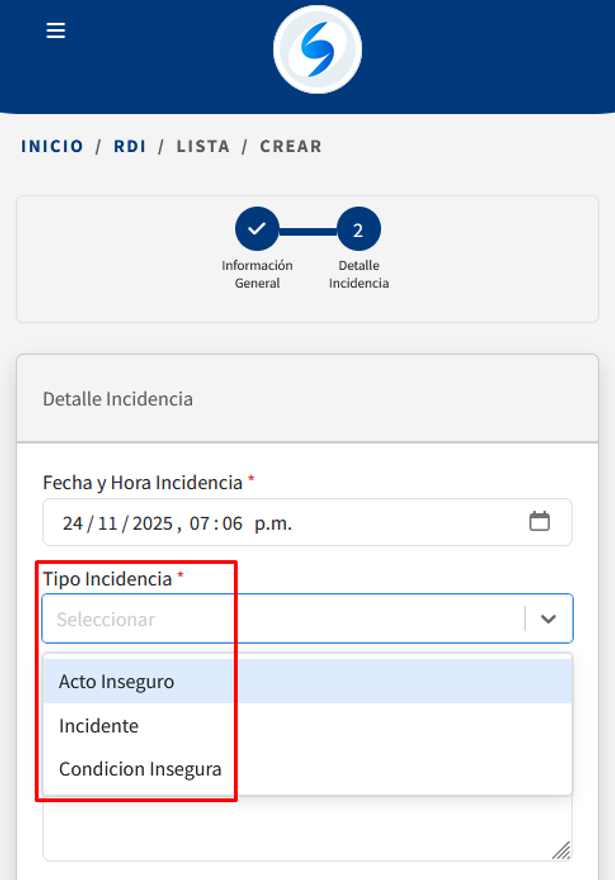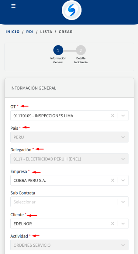Luego ingresamos con mayor detalle información de la incidencia, nuevamente tener en cuenta que es de obligatoriedad la información que cuenta con un asterisco rojo (*).