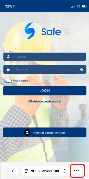 Para instalar el aplicativo SAFE IS en su dispositivo móvil Apple, debe ingresar la siguiente dirección en la barra de direcciones del navegador Safari.
