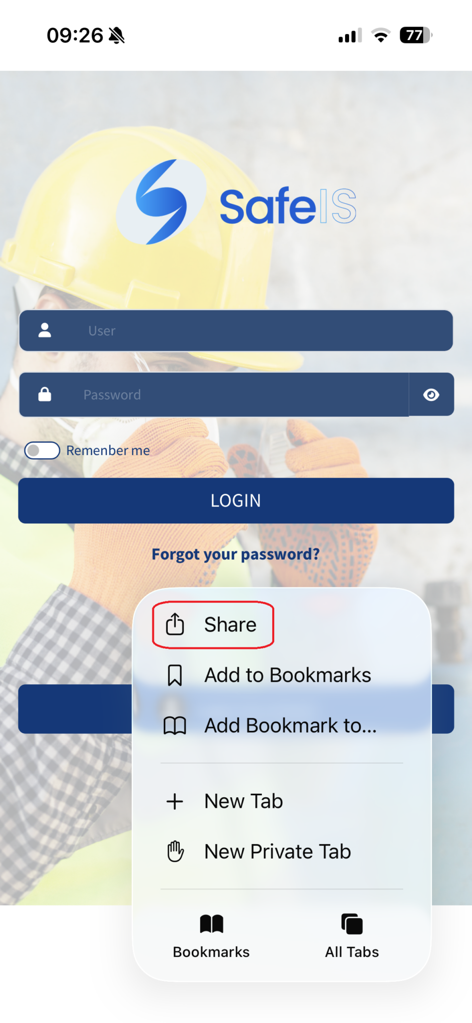 4. Para finalizar, en nuestro dispositivo Apple (iPhone) aparecerá el ícono del aplicativo SAFE IS instalado. Desde allí podremos acceder e ingresar nuestras credenciales de acceso.
