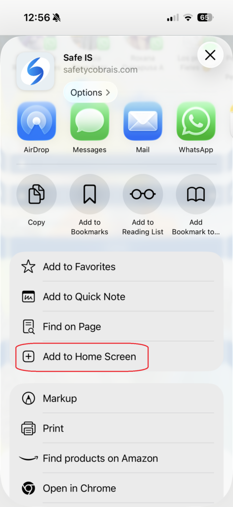 3. Aparecerá una nueva ventana con opciones, y ubicamos la opción de Añadir a la pantalla de inicio:
