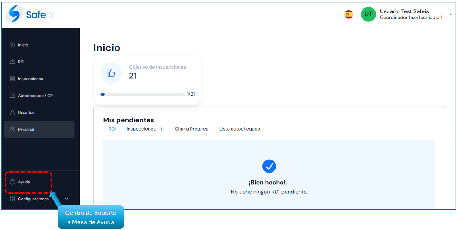 Redirige al Centro de Soporte, donde podrá registrar incidencias o realizar consultas.