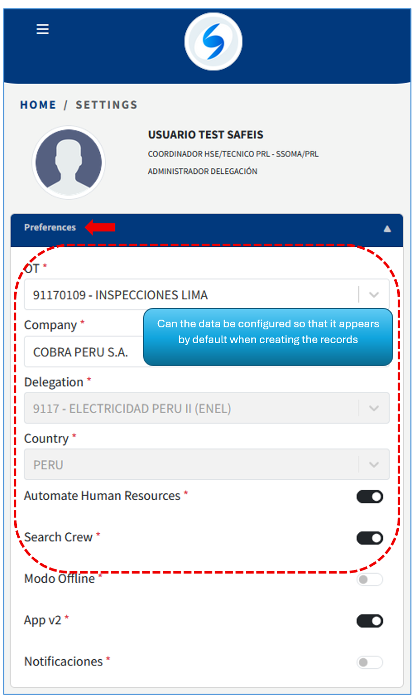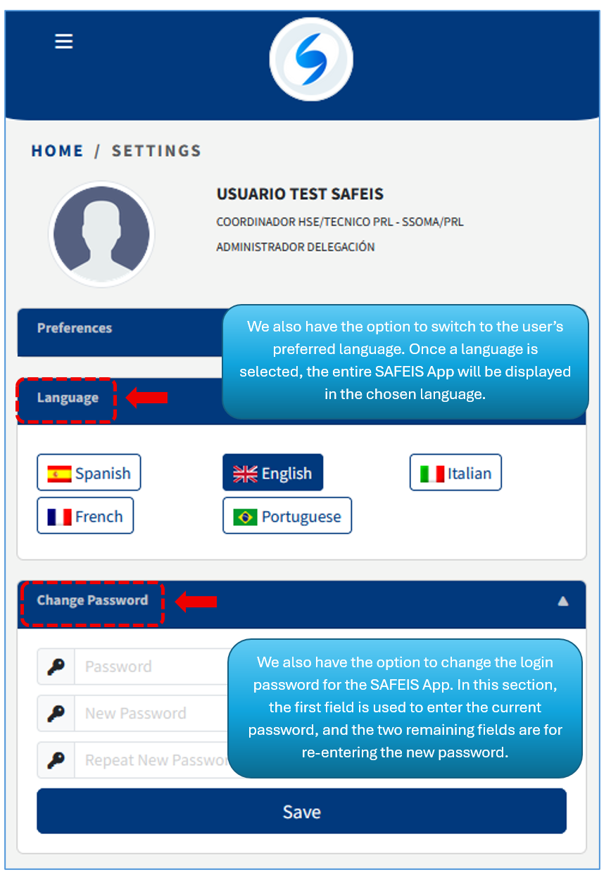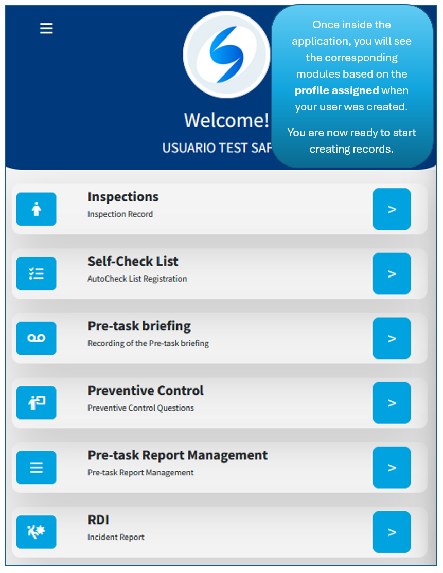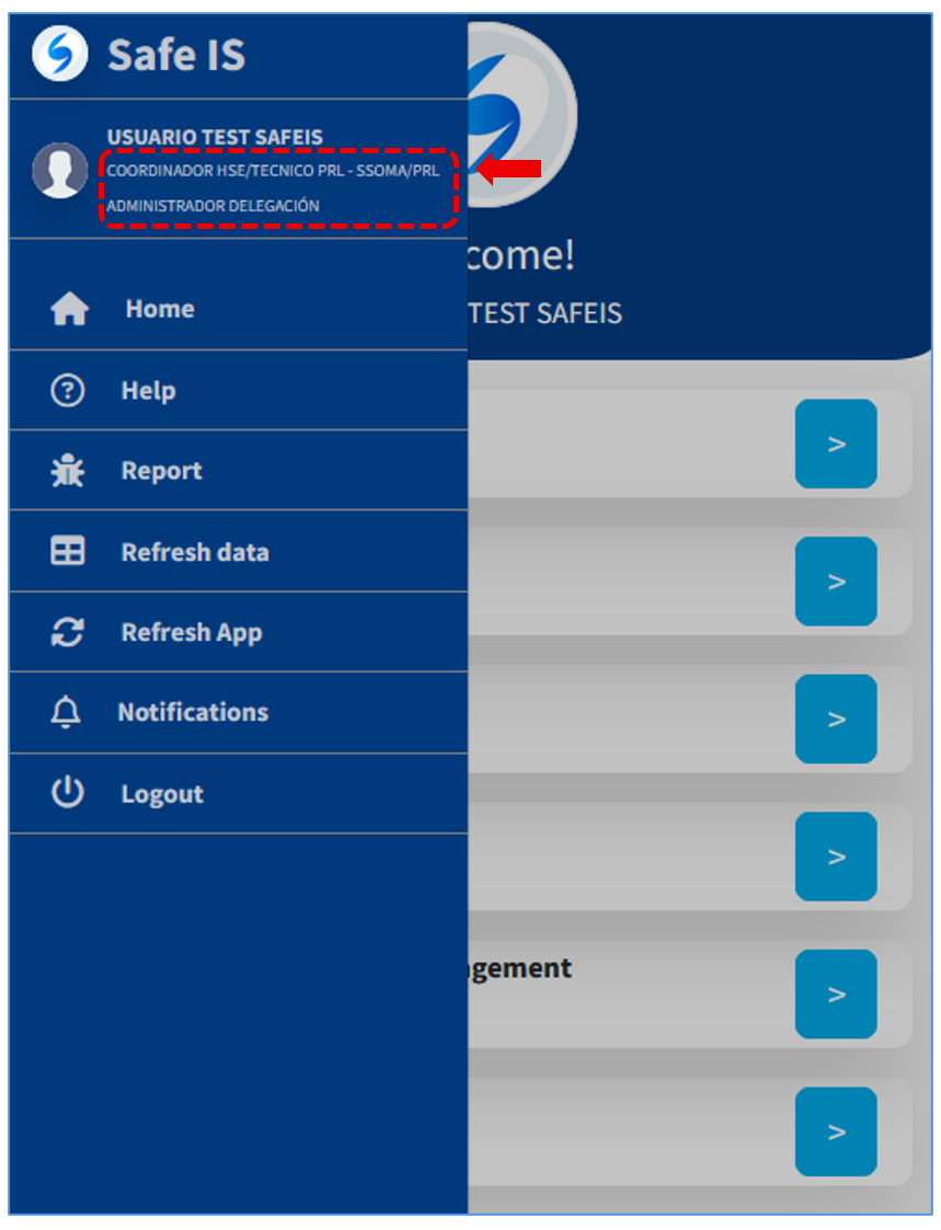 Once we enter the SAFE IS App, we will see three horizontal lines in the upper-left corner. From this menu, we can configure several options related to our user profile.