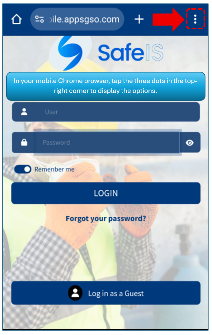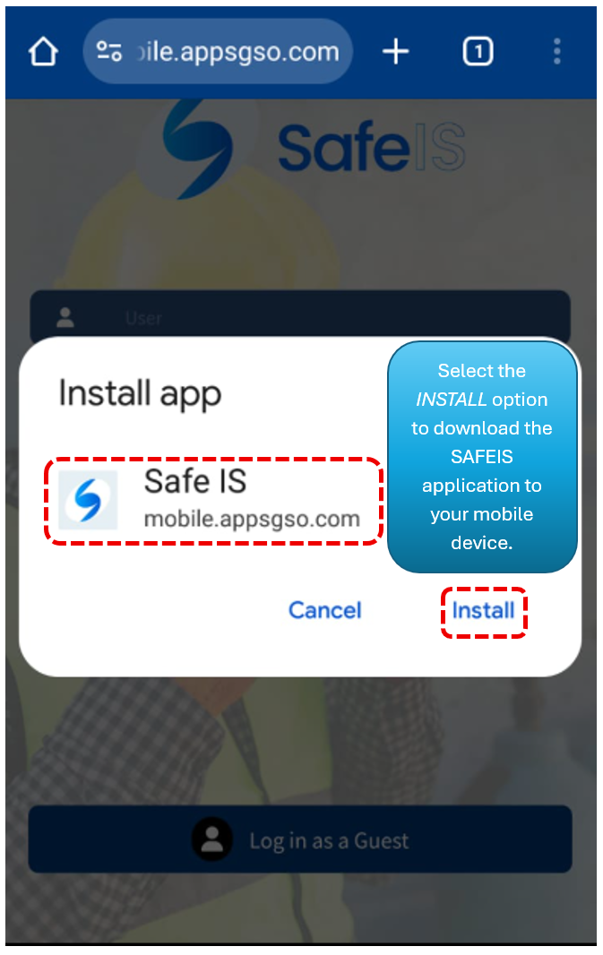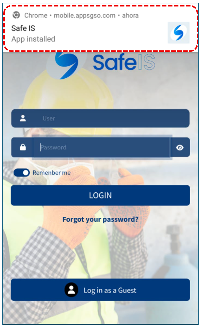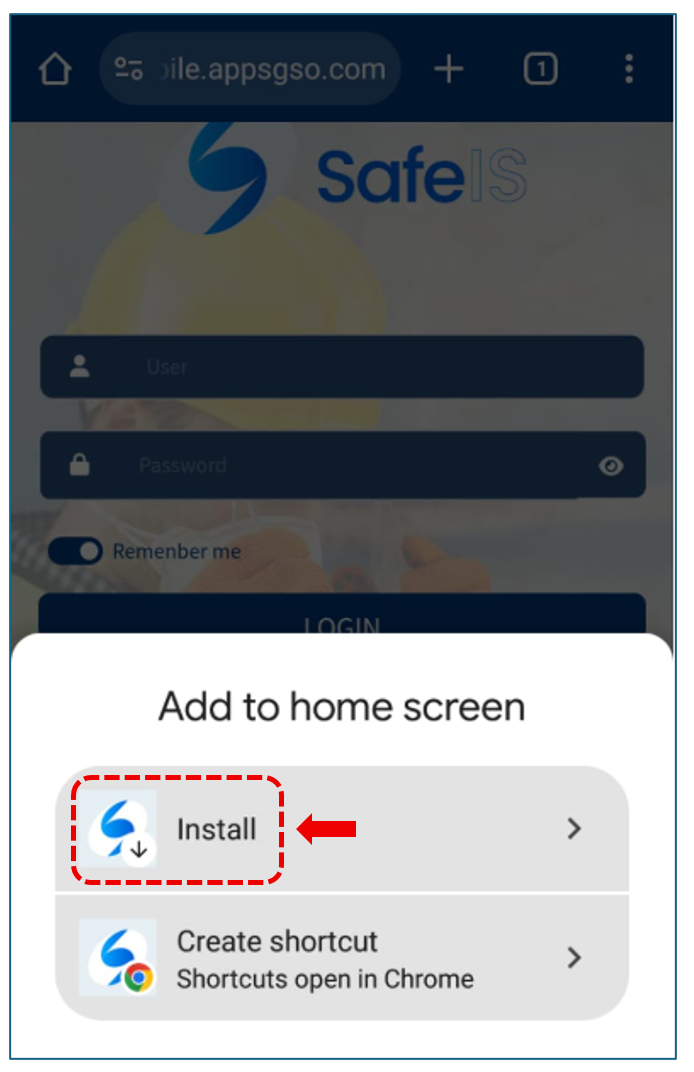 To install the application Safe IS on your mobile device, you must enter the following address in the Chrome browser’s address bar: