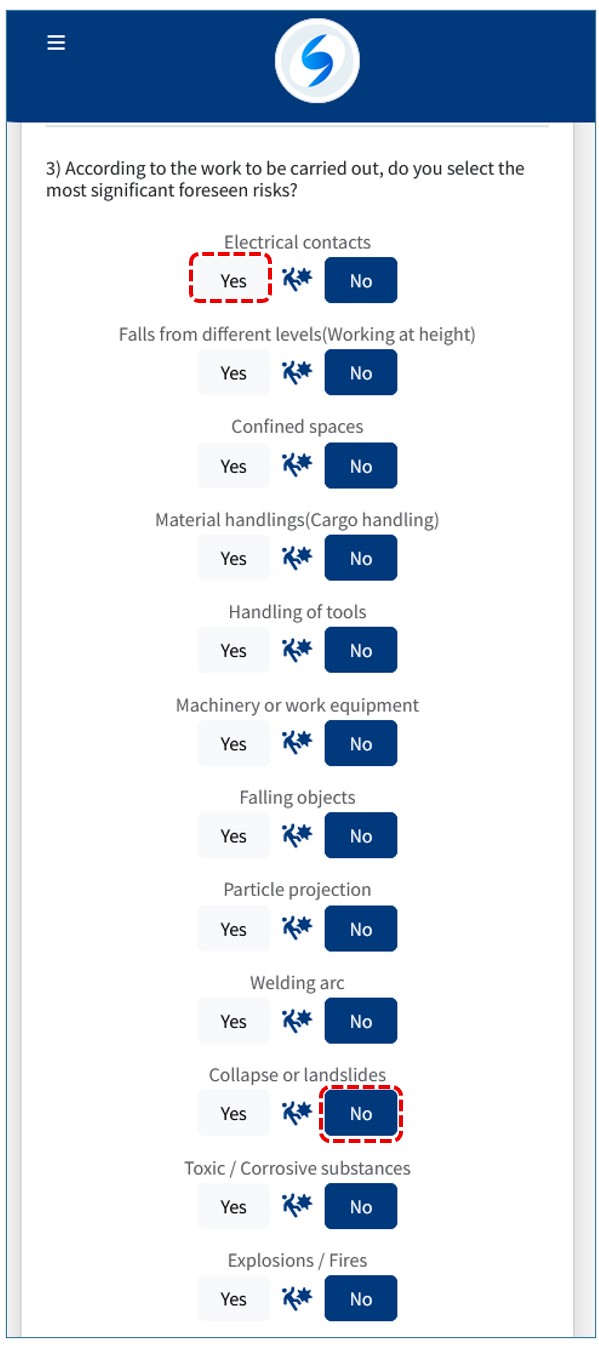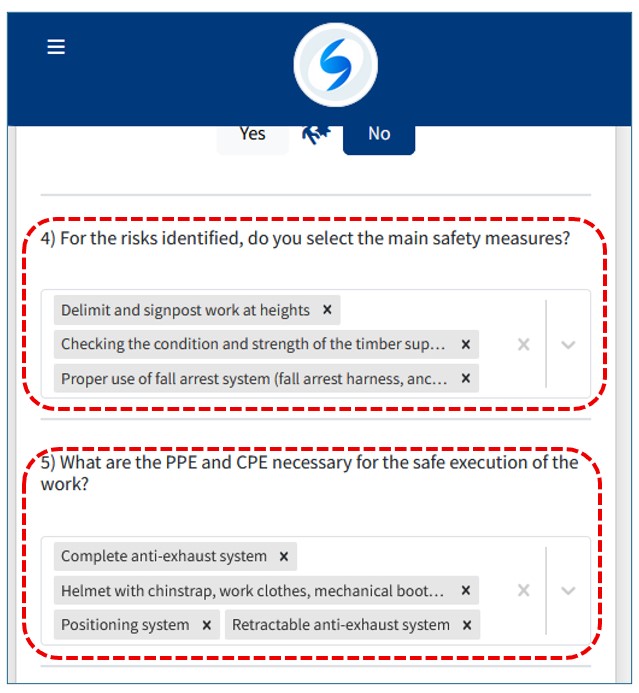 In Questions 3 and 4, enter the preventive measures and the necessary PPEs (CPEs) for the tasks you are going to perform and that were selected in Question 2: 3 y 4 vamos a ingresar las medidas preventivas y los EPIs (EPCs) necesarios para los trabajos que vamos a realizar y que marcamos en la pregunta 2: