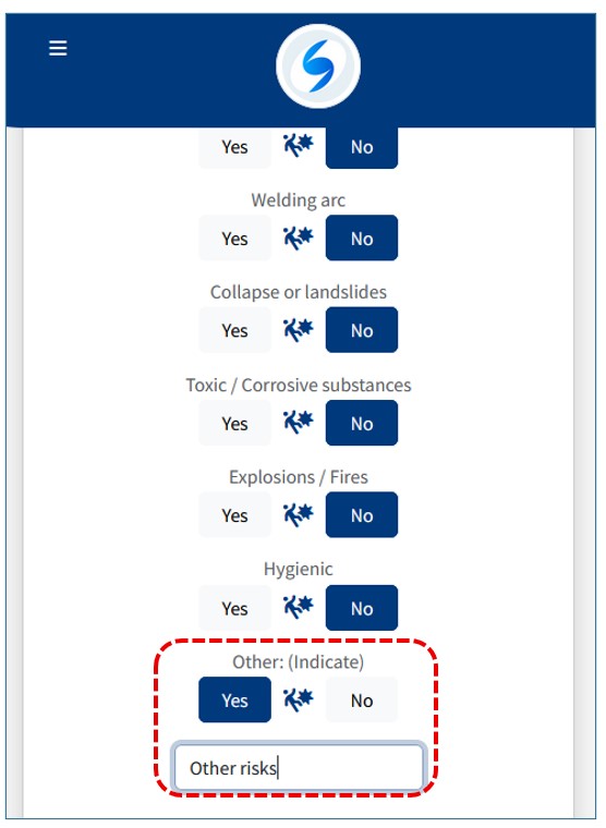 In Question 2, answer based on the task to be performed. There is an OTHERS field to enter a risk not listed, in which case write it in the blank space: