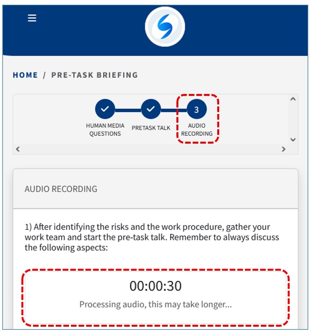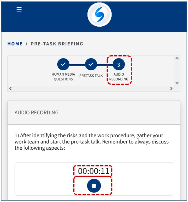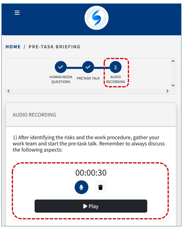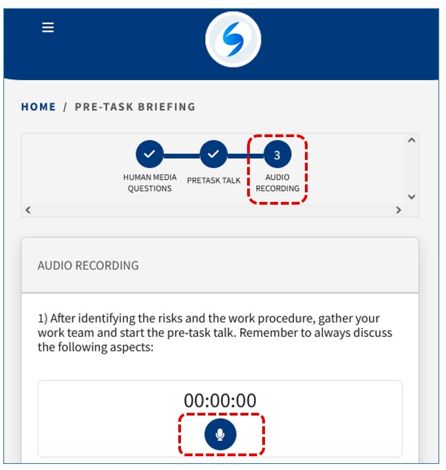 Finally, go to the third section, where you can record the Pre-Task Talk audio. Simply tap the microphone icon to start recording: