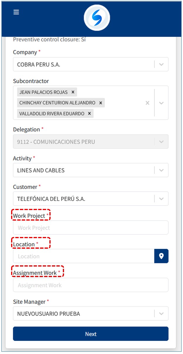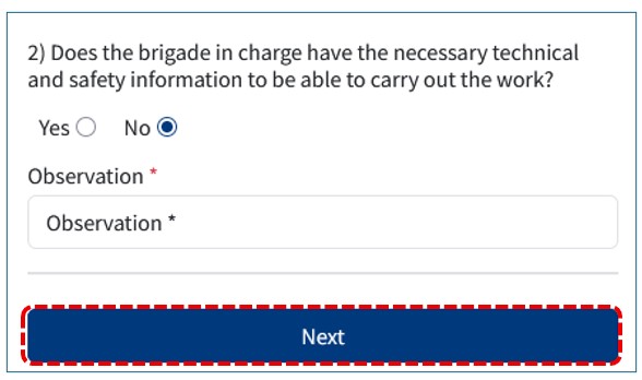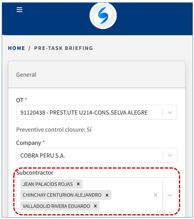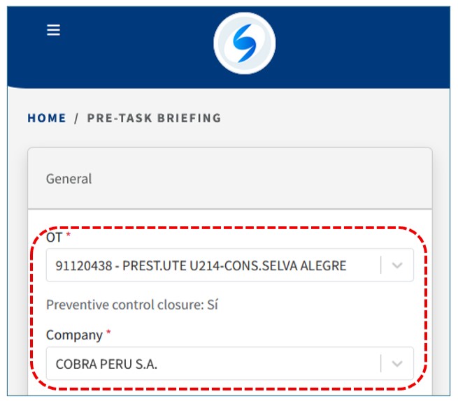 When entering the Pre-Task Talk option, remember that the system requires certain mandatory information, while others are optional. The mandatory fields are marked with a red asterisk symbol.
