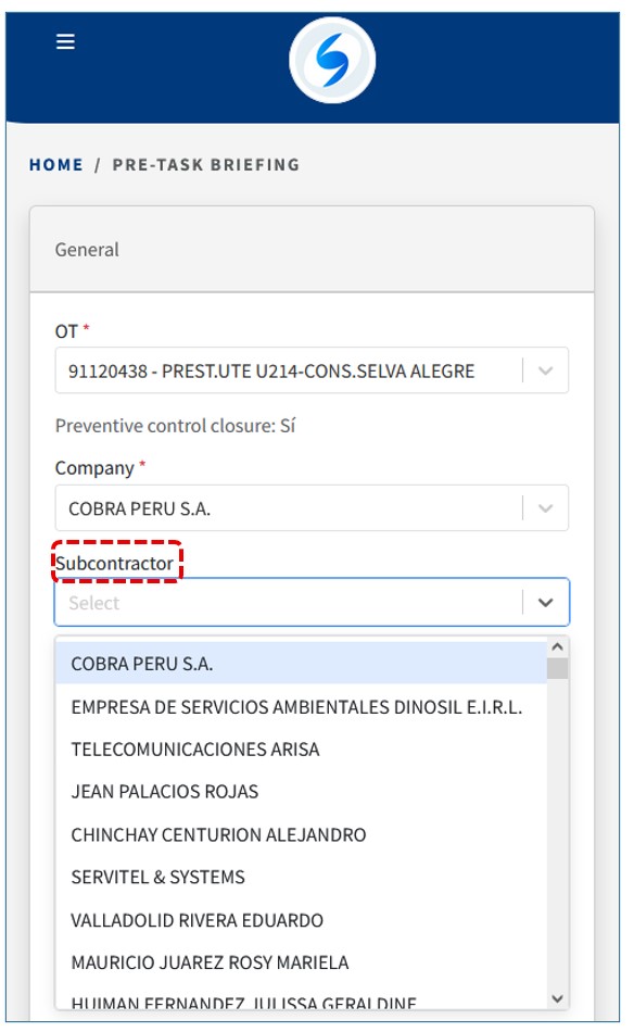 Thus, we can have one or more subcontractor companies: una o más empresas de Subcontrata(s):