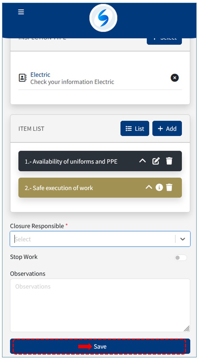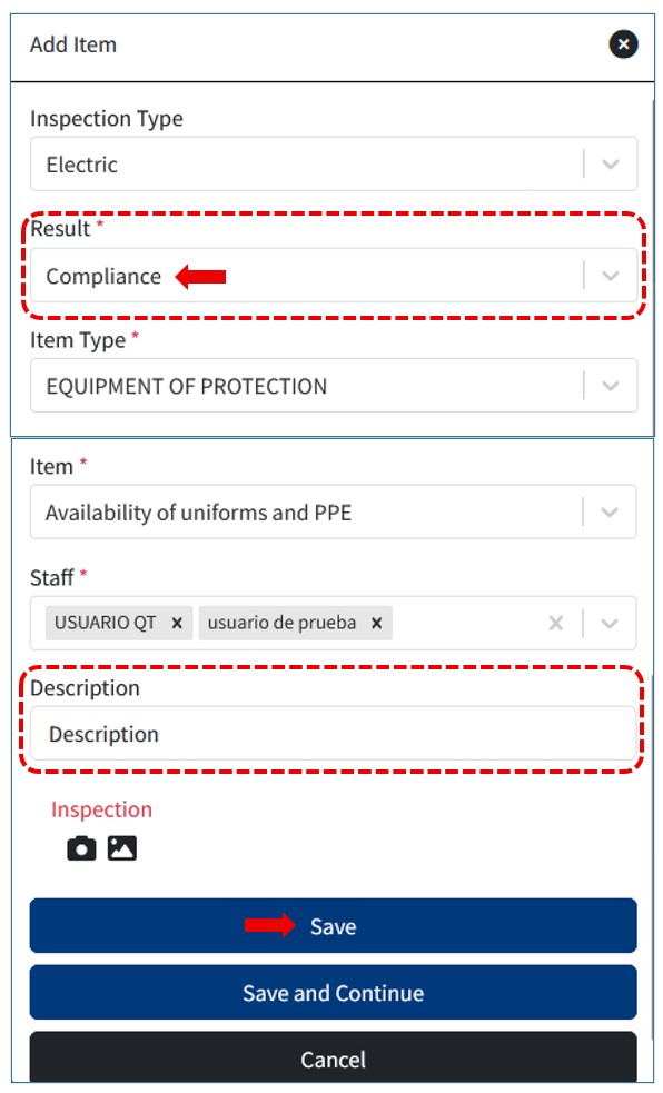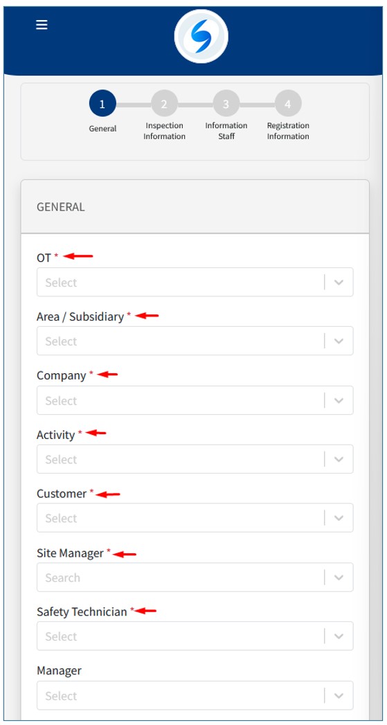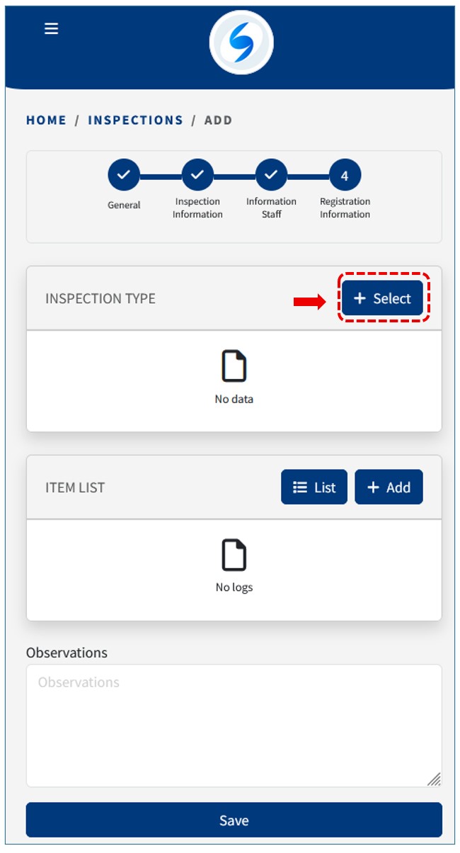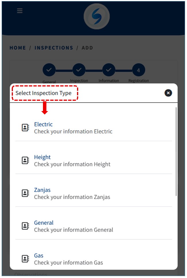 4)Finally, we will enter the details of the Inspection. To do this, first select the Type of Inspection.:
