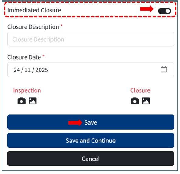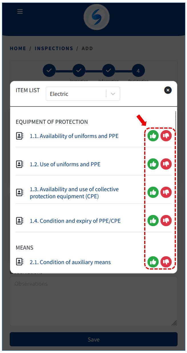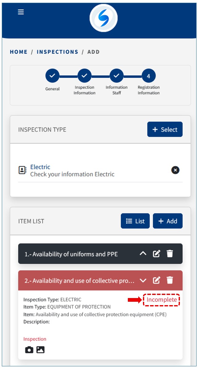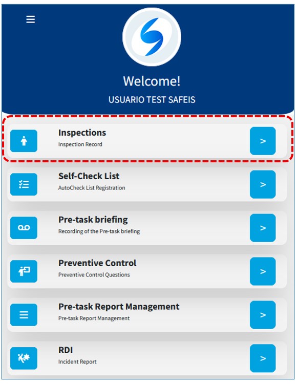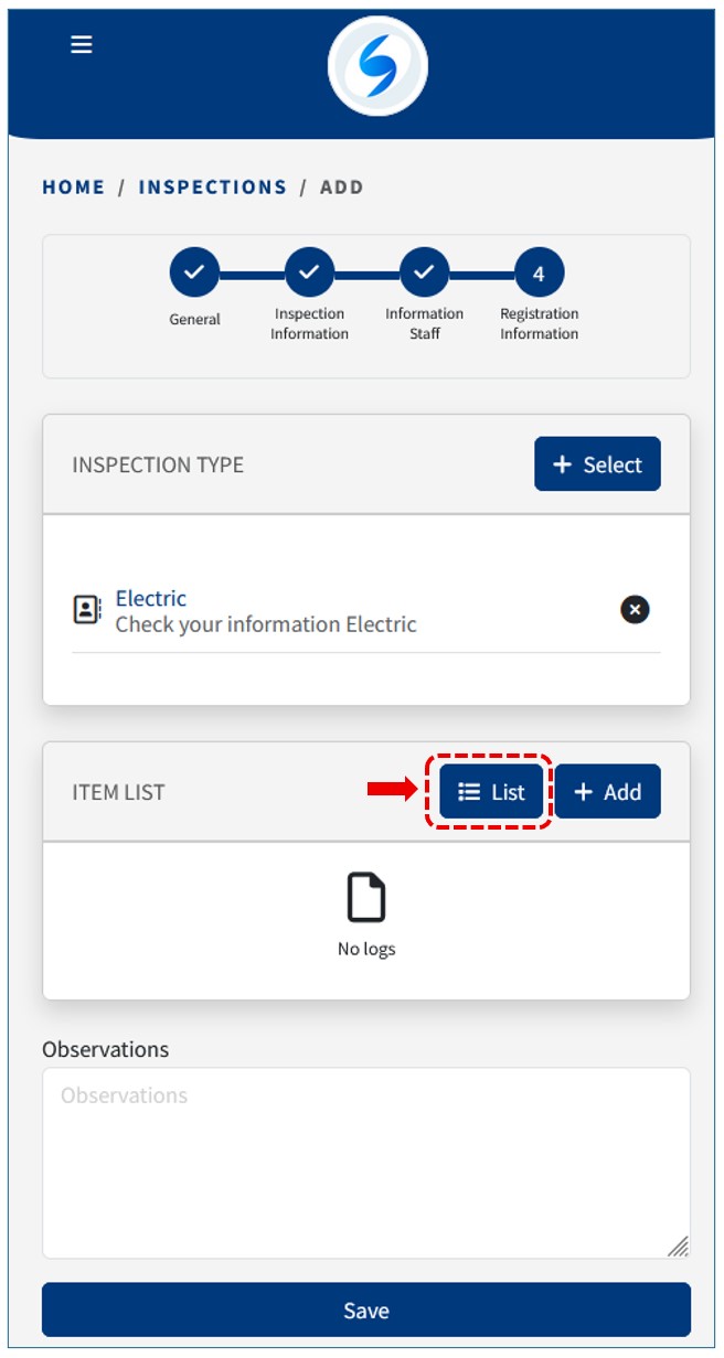 4)Finally, we will enter the details of the Inspection. To do this, first select the Type of Inspection.: