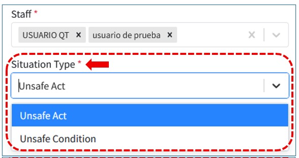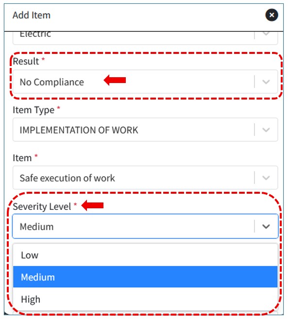If the result is Nonconformity, you must indicate whether the Type of Situation is an Unsafe Act or an Unsafe Condition, also whether it is Serious or not, as well as a Proposed Action and whether Immediate Correction is required: