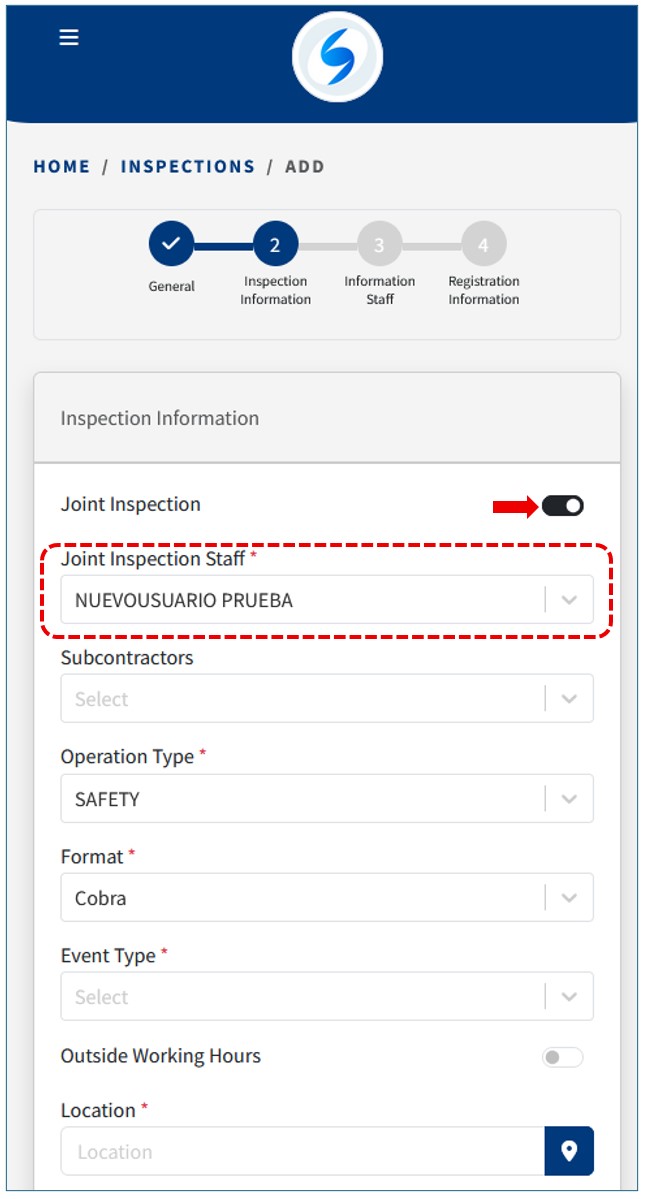 The mandatory inspection details are recorded, such as whether it is a joint inspection or not:
