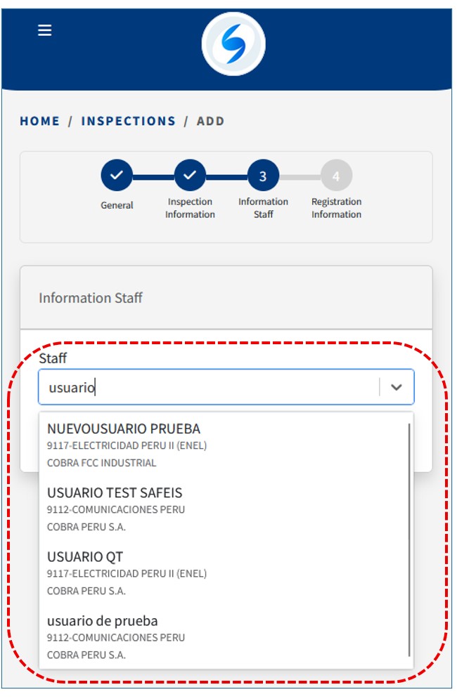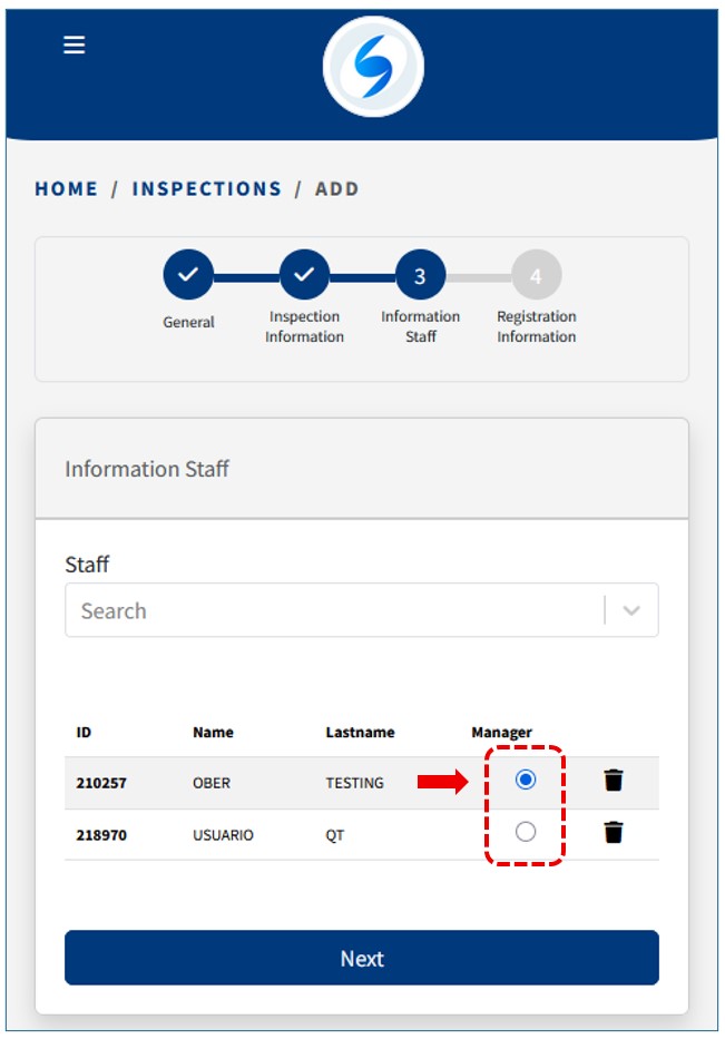 3)When entering the personnel we are inspecting, the first one added will appear as the Person Responsible for the InspectionAs you continue adding personnel, you can modify that designation: