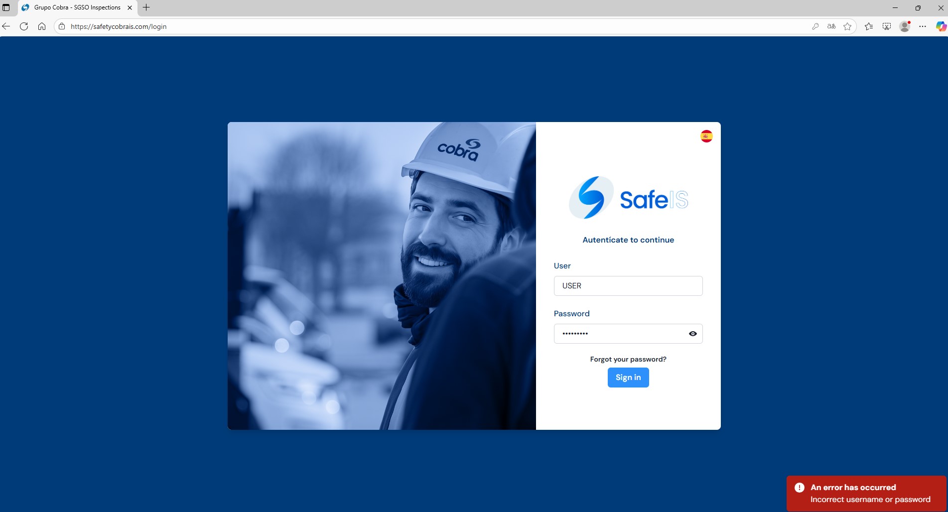 Fill in the Username and Password fields (mandatory) and then click the button. Iniciar Sesión