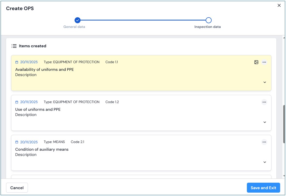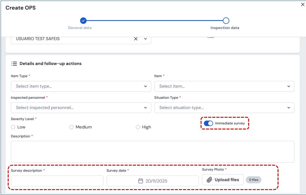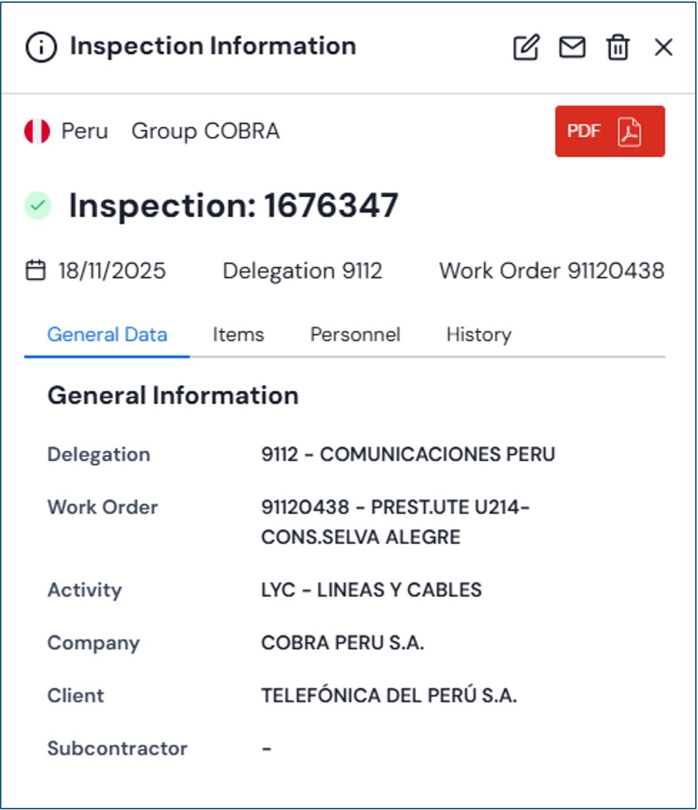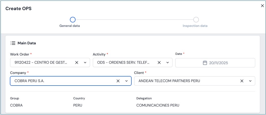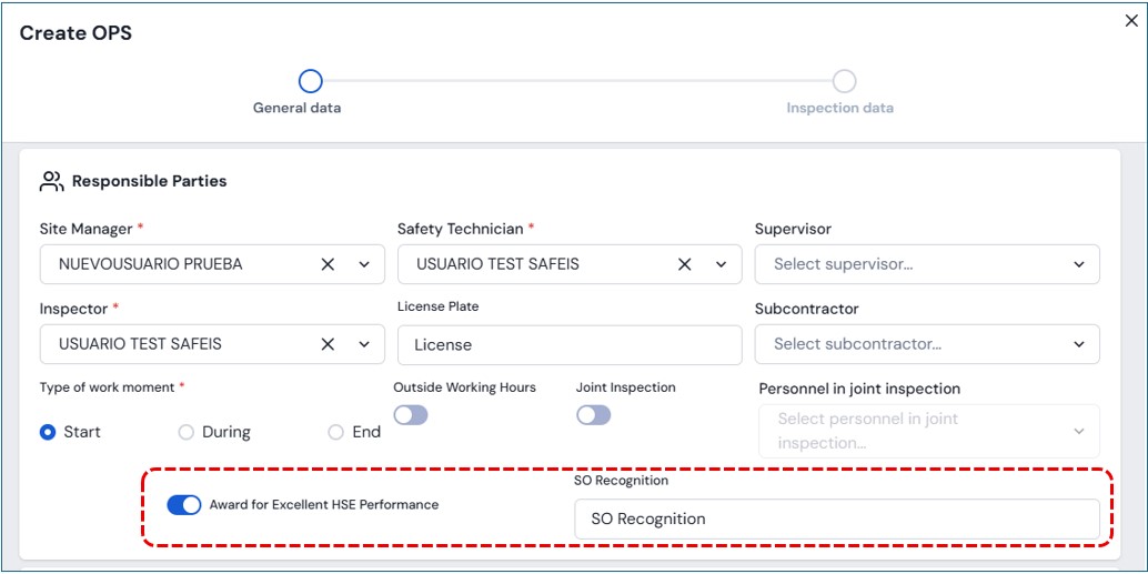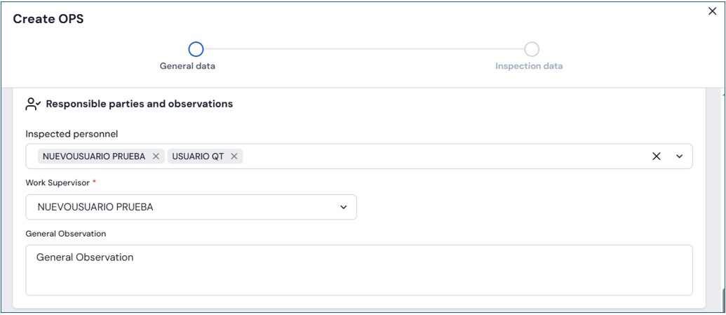 - Inspector (by default, the name of the user creating the record appears, but it is editable)