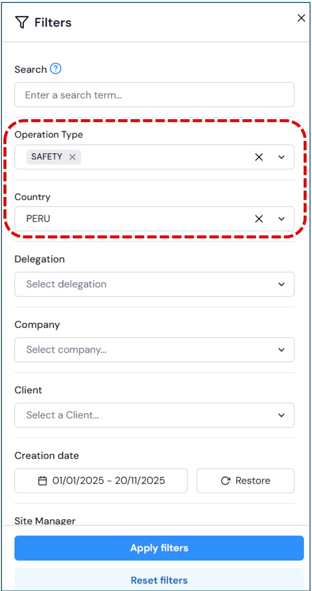 If you want to search for a specific result, the user can use the Search option within the fields. Click on the field, type at least 3 letters, and then select the desired option.