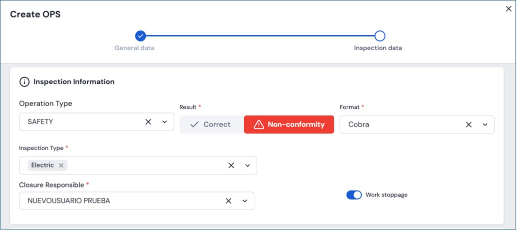 Nonconformity When selecting this option, the system will request the Responsible for Correction and will also ask whether there was a Work Stoppage.
