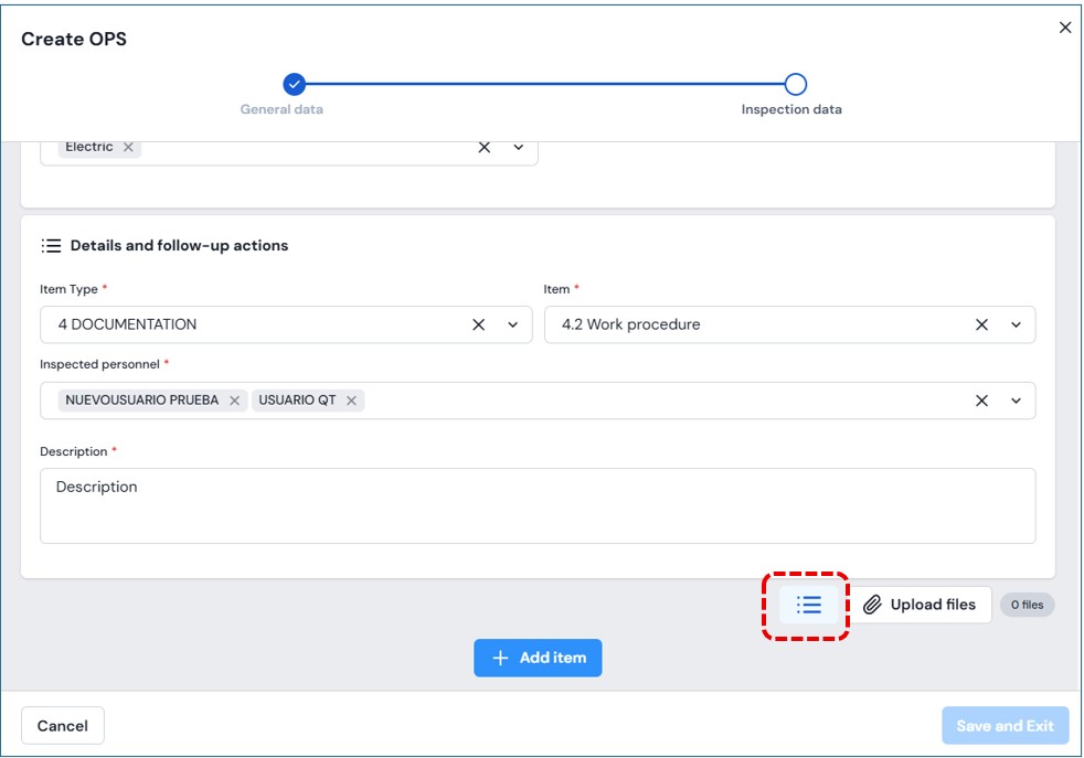 If the inspection is correct and you want to load items from a predefined list, click on the three-line icon shown.