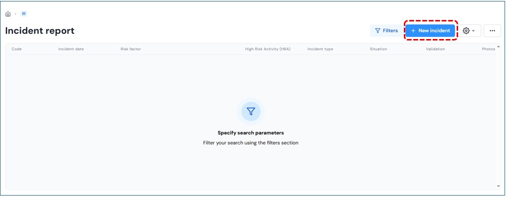 On the main page of the module, you will find the “New Incident” button Click this button to create a new record.