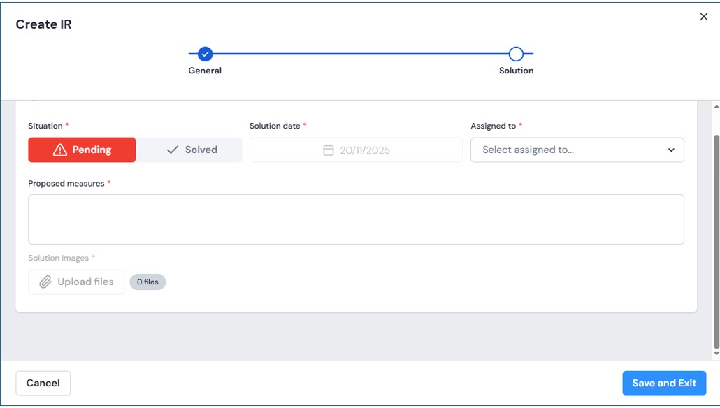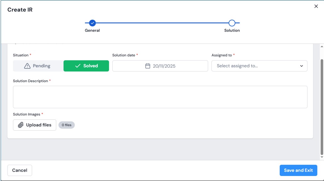 - Reported by (the user’s name appears by default and is editable)
