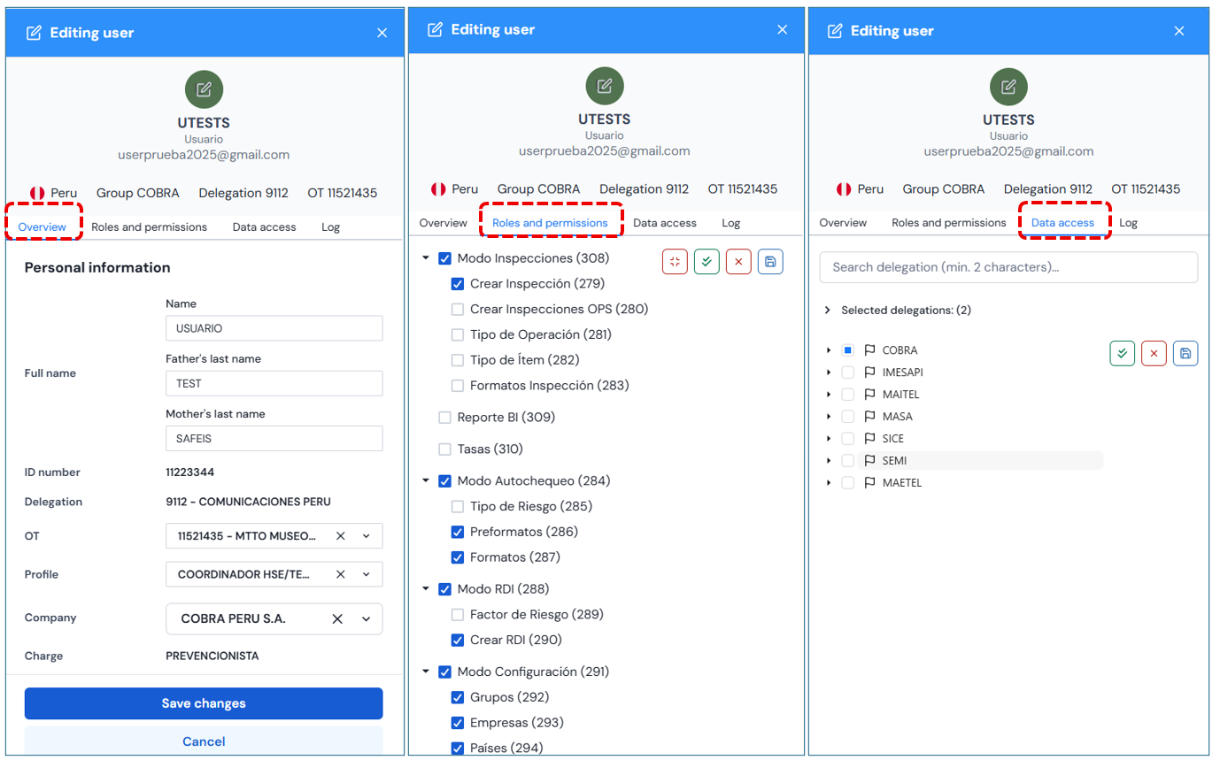 Within the results panel, clicking on the record you want to edit will open a left-hand side window showing the information of the already created user.