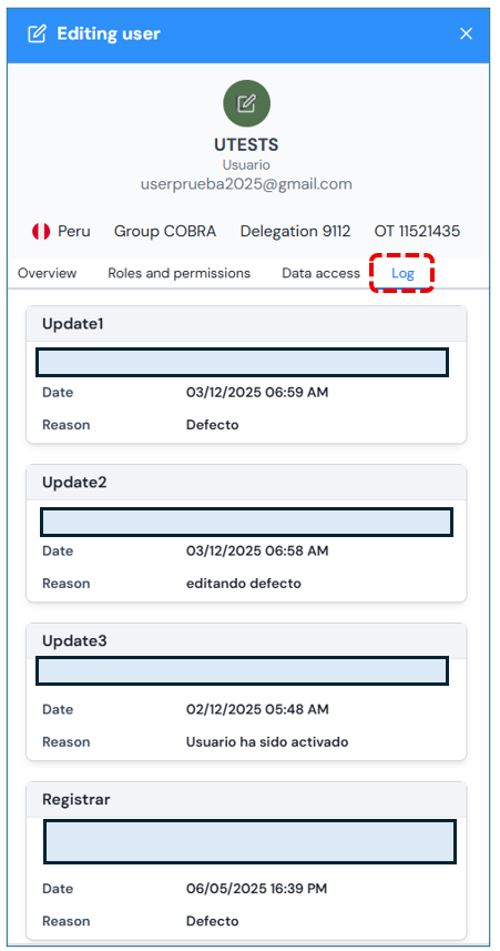 Additionally, a Historysection will be displayed, which is not editable. This section shows information about changes or actions performed on the user.
