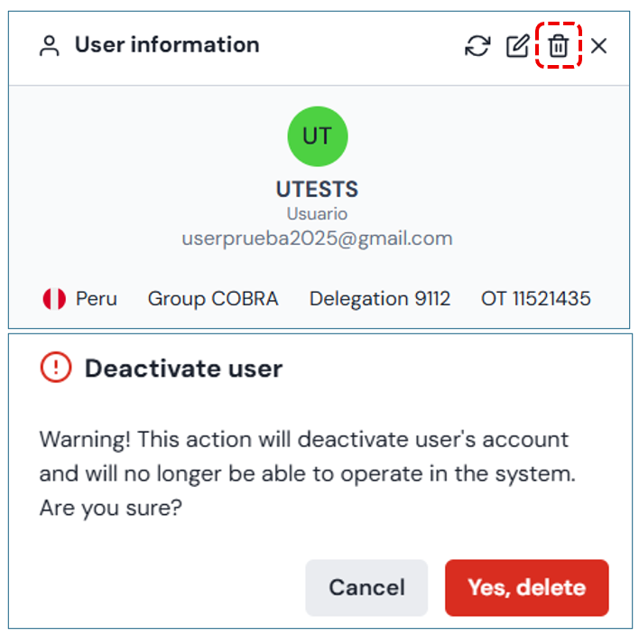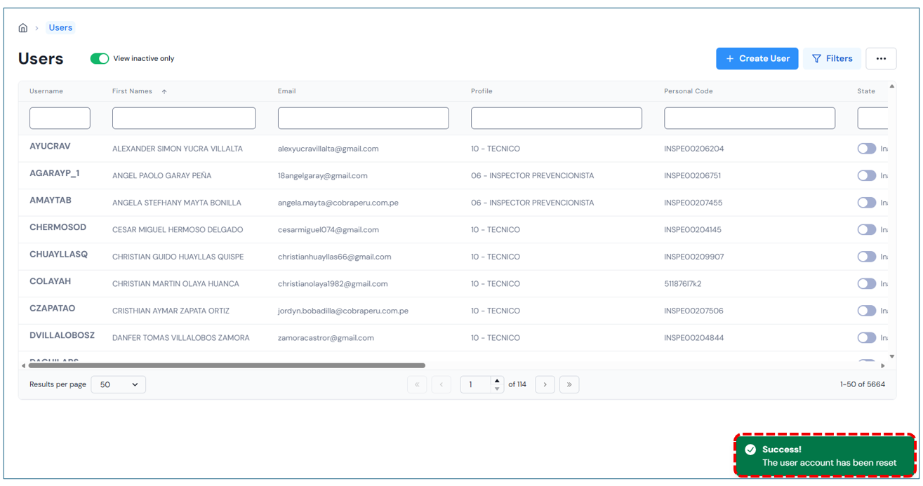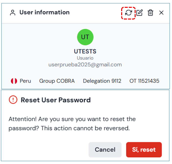 Once confirmed, the system will send a link to the user’s email to reset the password. Additionally, a message will appear at the bottom of the window indicating that the process was successfully completed.