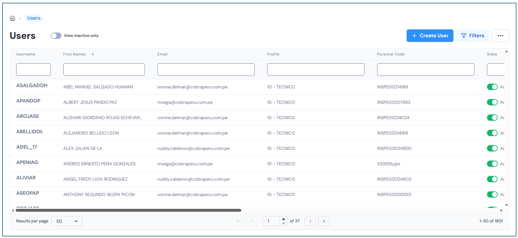 Records Within the results panel, you can view all records that meet the parameters of the selected filter. Additionally, you can perform a column-sensitive search to further refine the results.