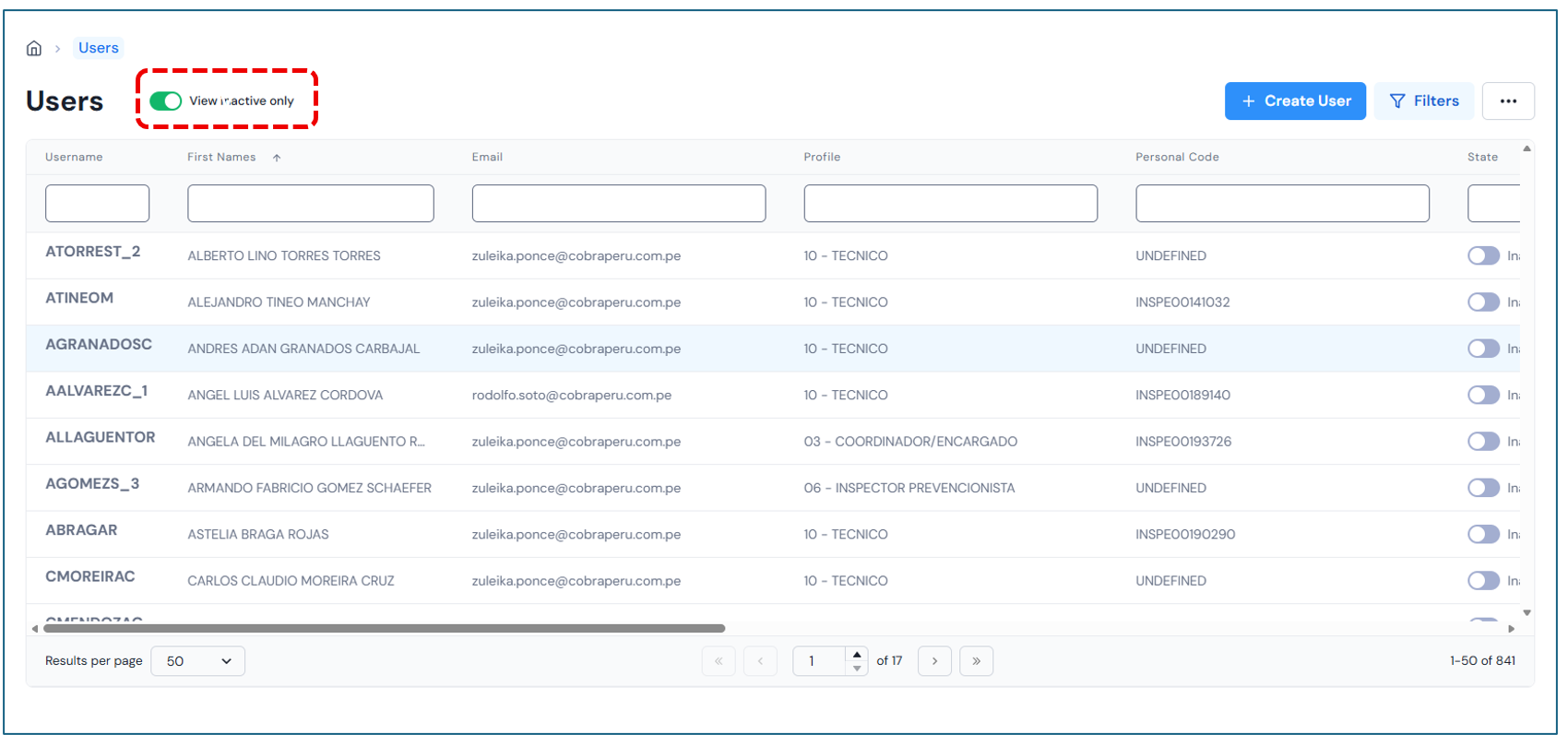“View only inactive” button:Clicking this button will display only inactive records. To view active records again, click the same button once more.