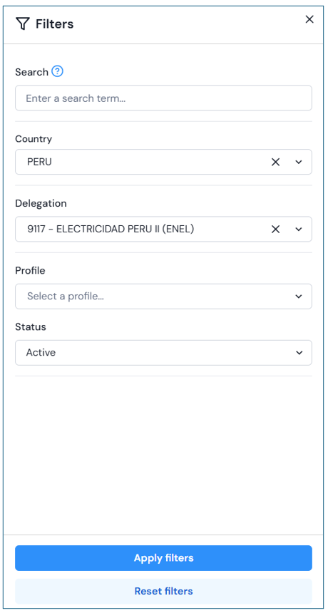 Additional Filters At the top of the results panel, complete the available fields to obtain results according to the selected criteria while maintaining the initial filtering.