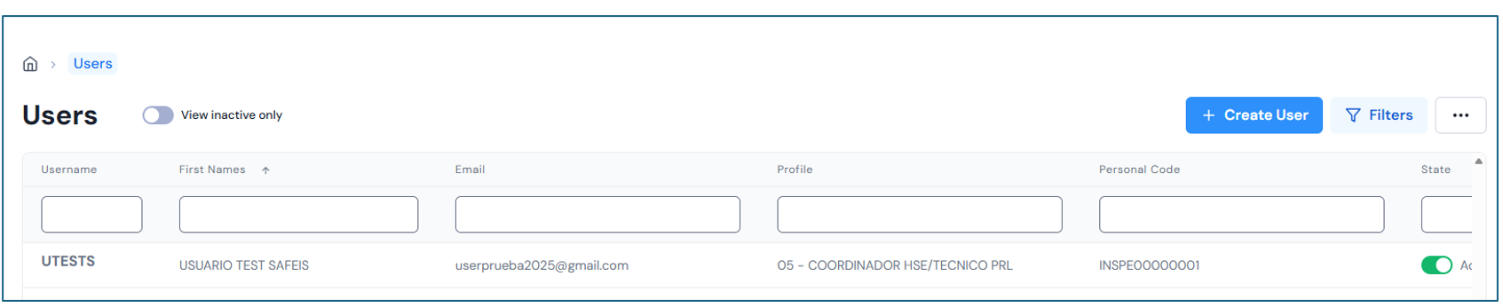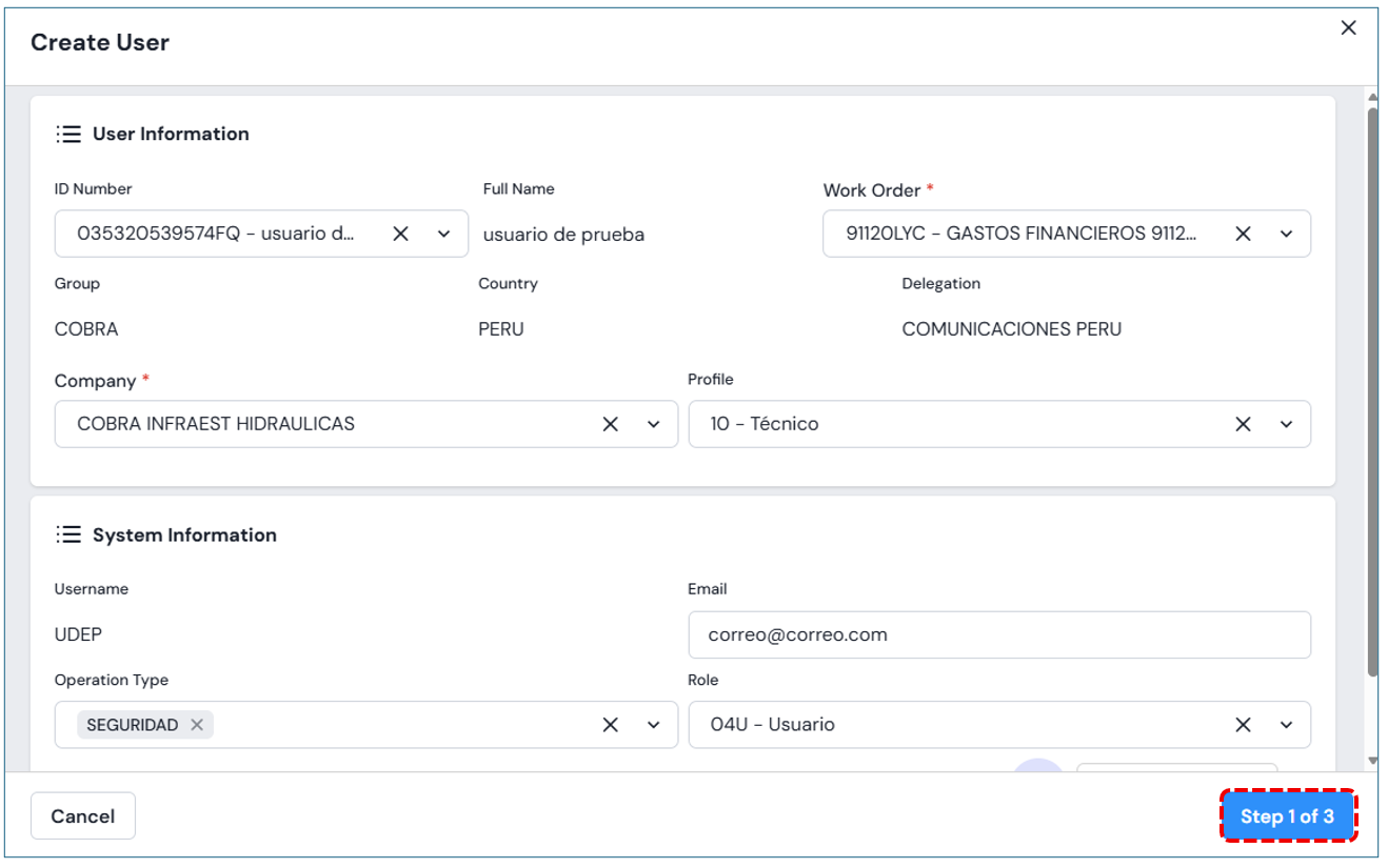 On the main page of the module, you will find the “Create User”button. Click this button to start a new record. A pop-up window will open where you can begin the process. Complete the following fields: