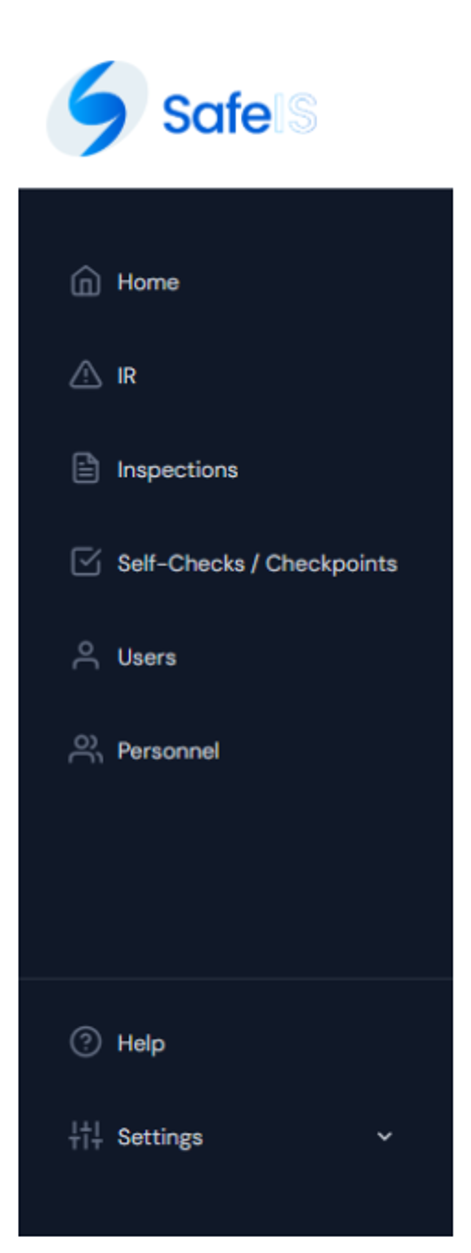 • Left side menu: Displays the modules enabled according to the user’s profile.