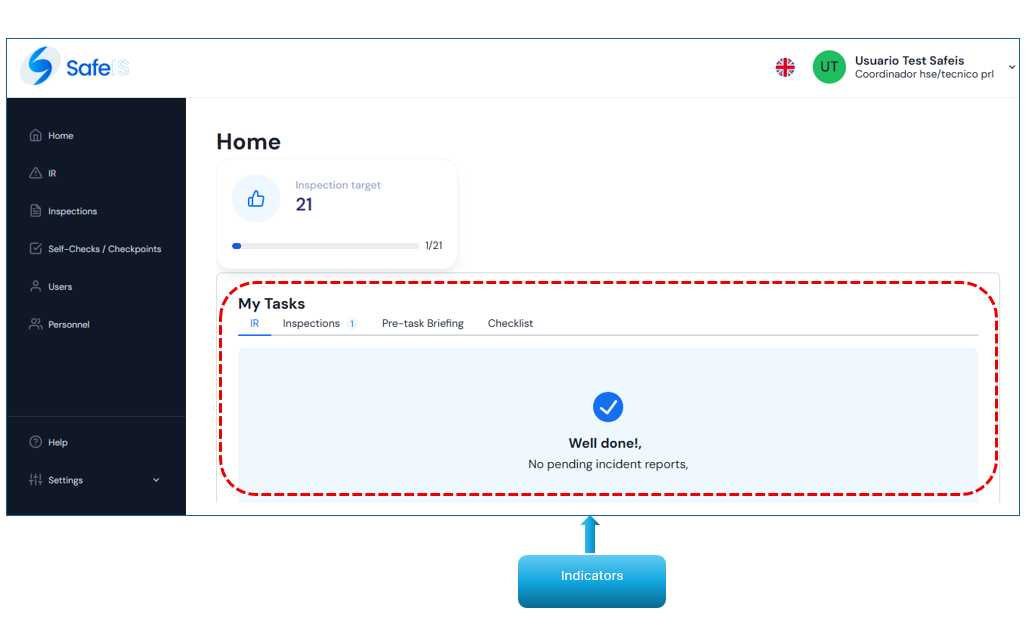 • Indicators: Displays the configured monthly targets and the pending records to be closed or lifted. If there are no pending items, “0” is shown.