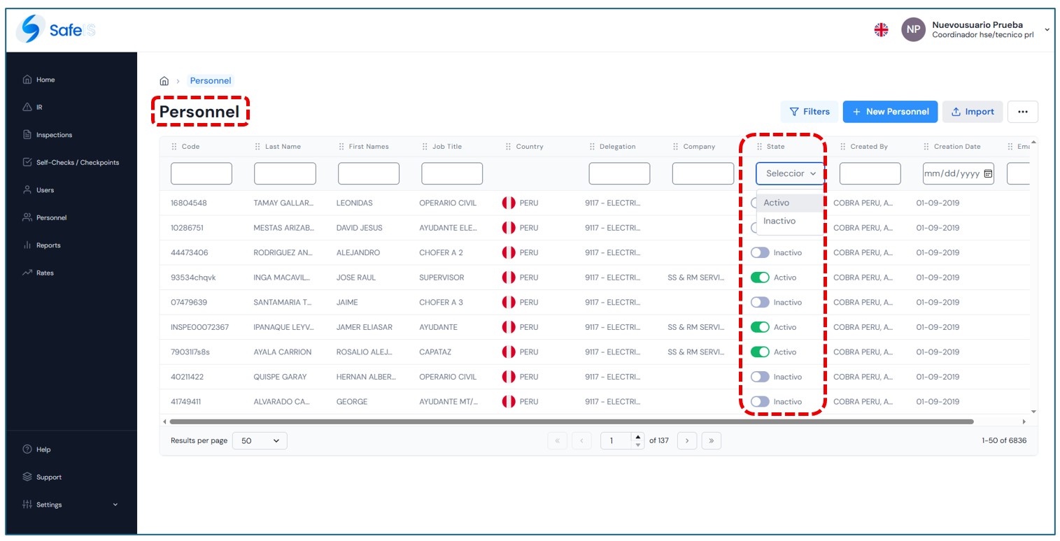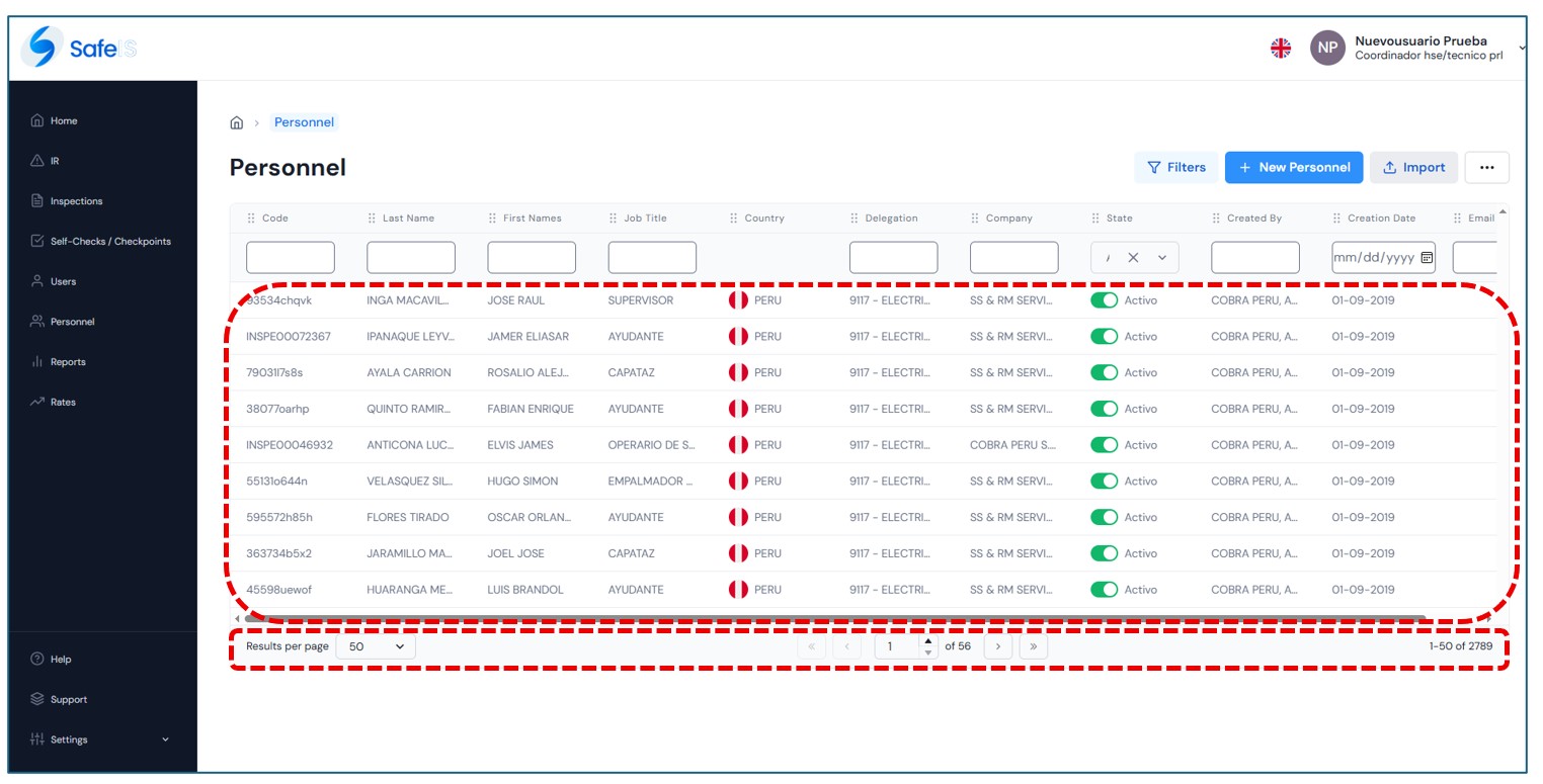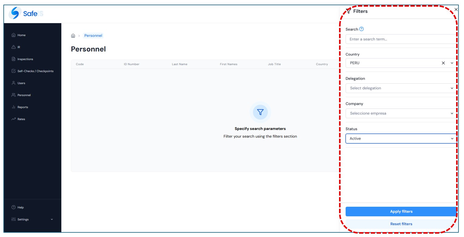 • Filters:At the top of the results panel, complete the filter fields to obtain results based on the selected criteria without losing the initial filtering. Please note that the filter applies only to the records displayed on-screen within the current pagination, not to the entire database.