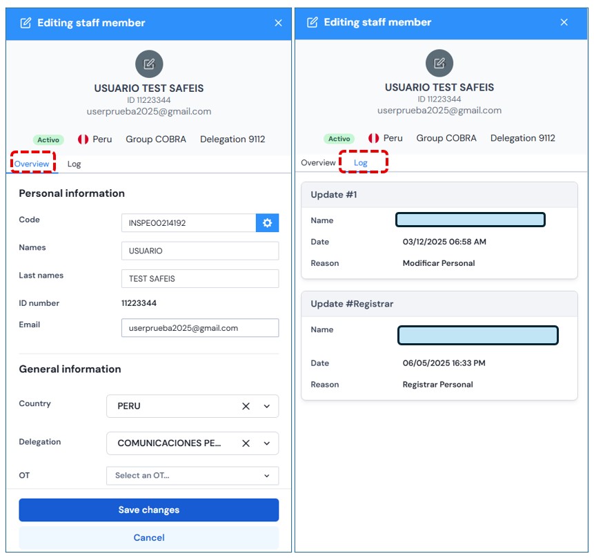Within the results panel, clicking on the record you wish to edit will open a window on the left side displaying the existing personnel information.