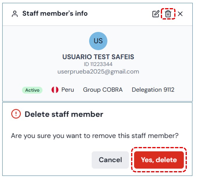 If the user wishes to proceed with the deletion, they must click “Yes, delete”, Otherwise, click “Cancel”.