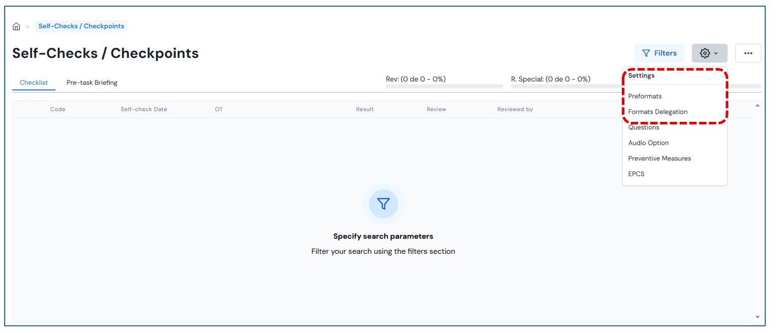 Upon entering this section, the home page will be displayed with the filter open to perform the corresponding search.