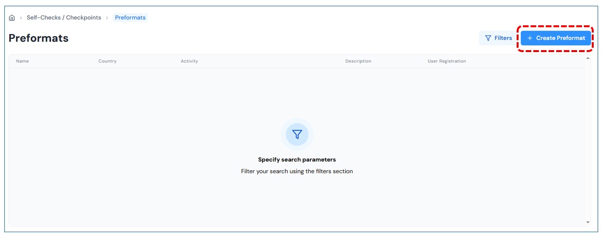 Select the “Create preformat” button and a will open where you must complete the following fields: