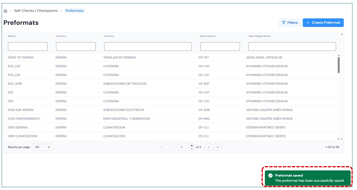 After completing the form and selecting Save the new preformat will be displayed in the the results panel.