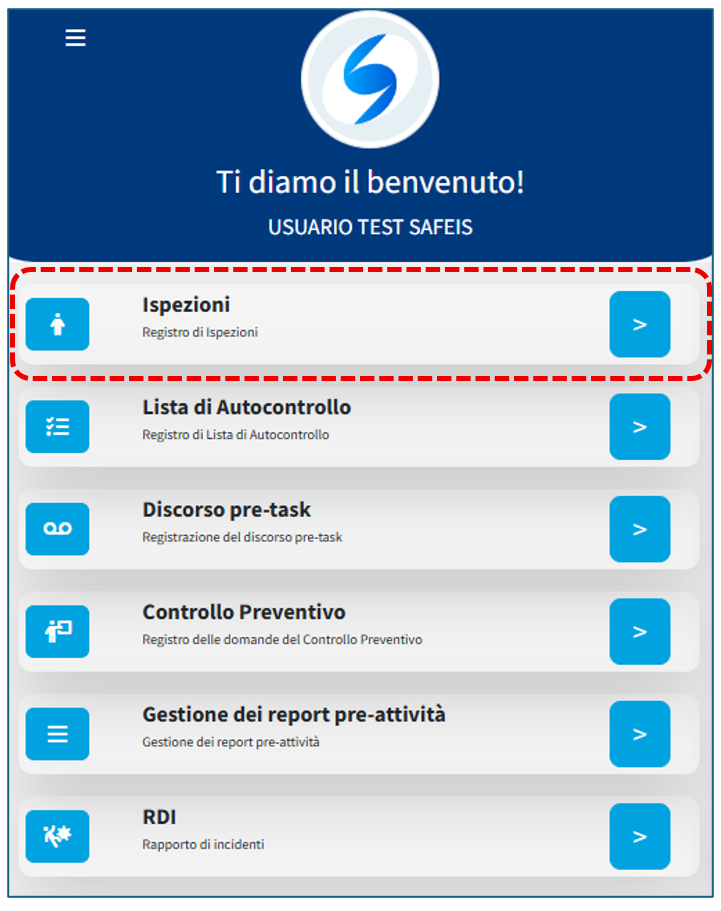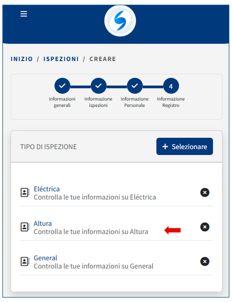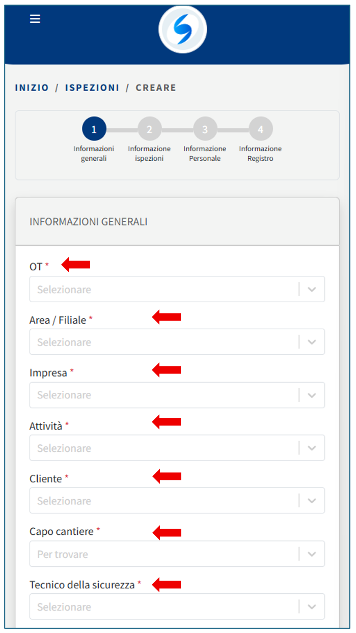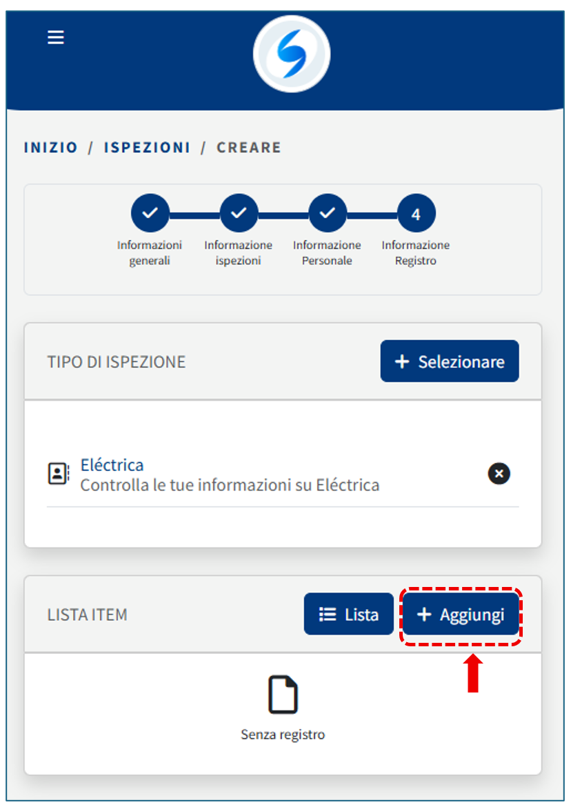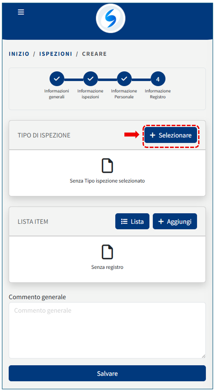 Iniziamo a registrare un’ispezione seguendo i passaggi indicati di seguito.